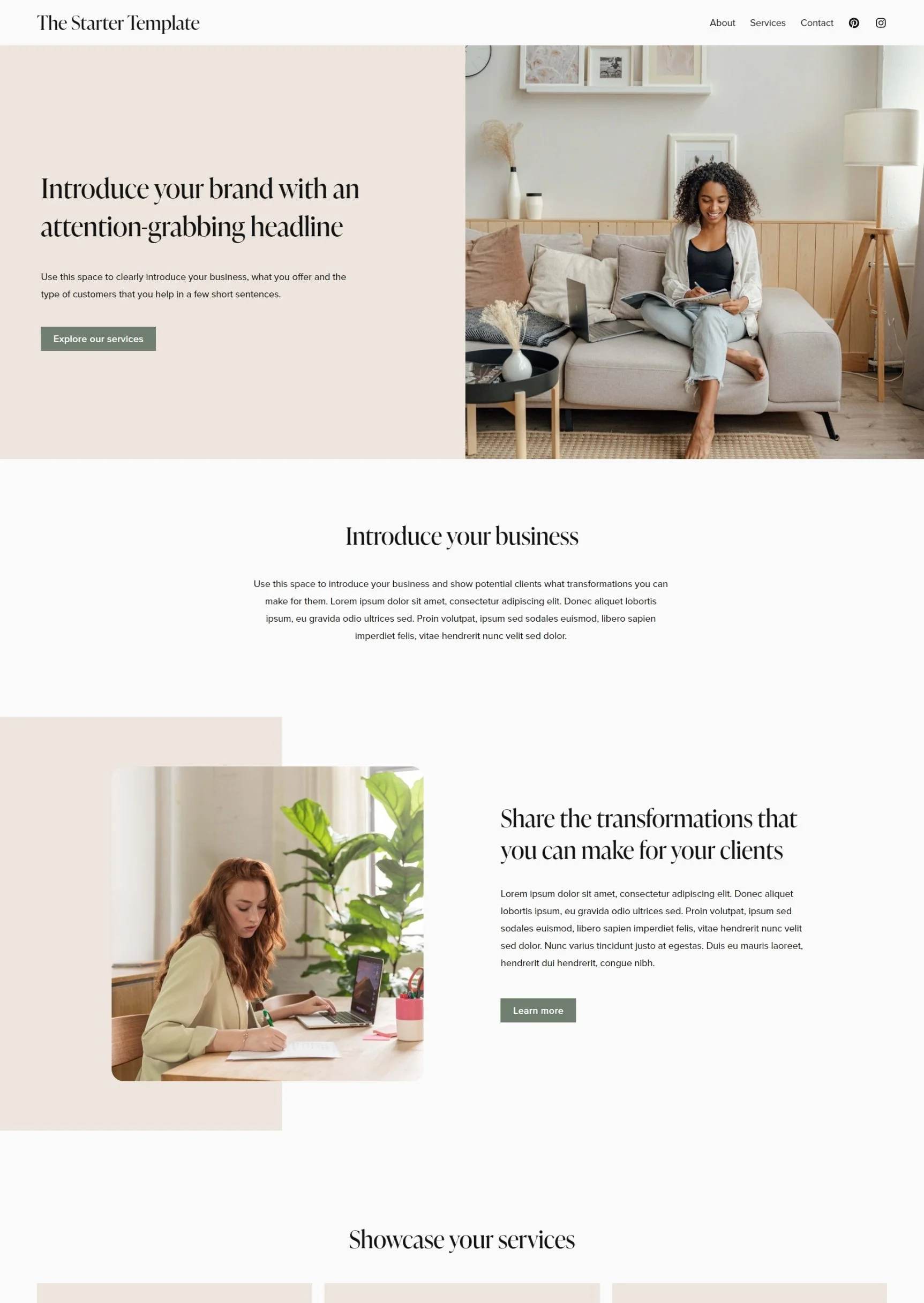 It definitely won’t look like everyone else’s! The branding used in our Squarespace templates is really easy to update. All you need to do is watch your video trainings and then use the Squarespace design editor to add your colour palette, your logos and your fonts into the template - and instantly every element of your website will reflect your business’ branding.